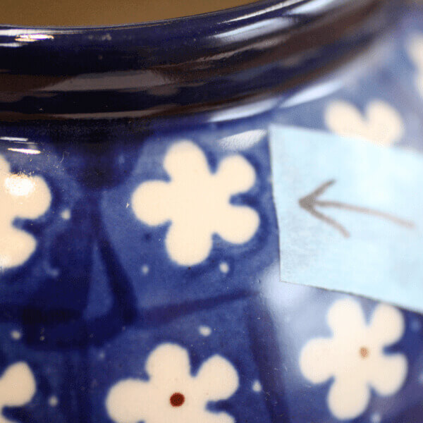 釉薬のムラ、絵付けミスや底面のザラザラが見られる【訳あり商品 】です。
